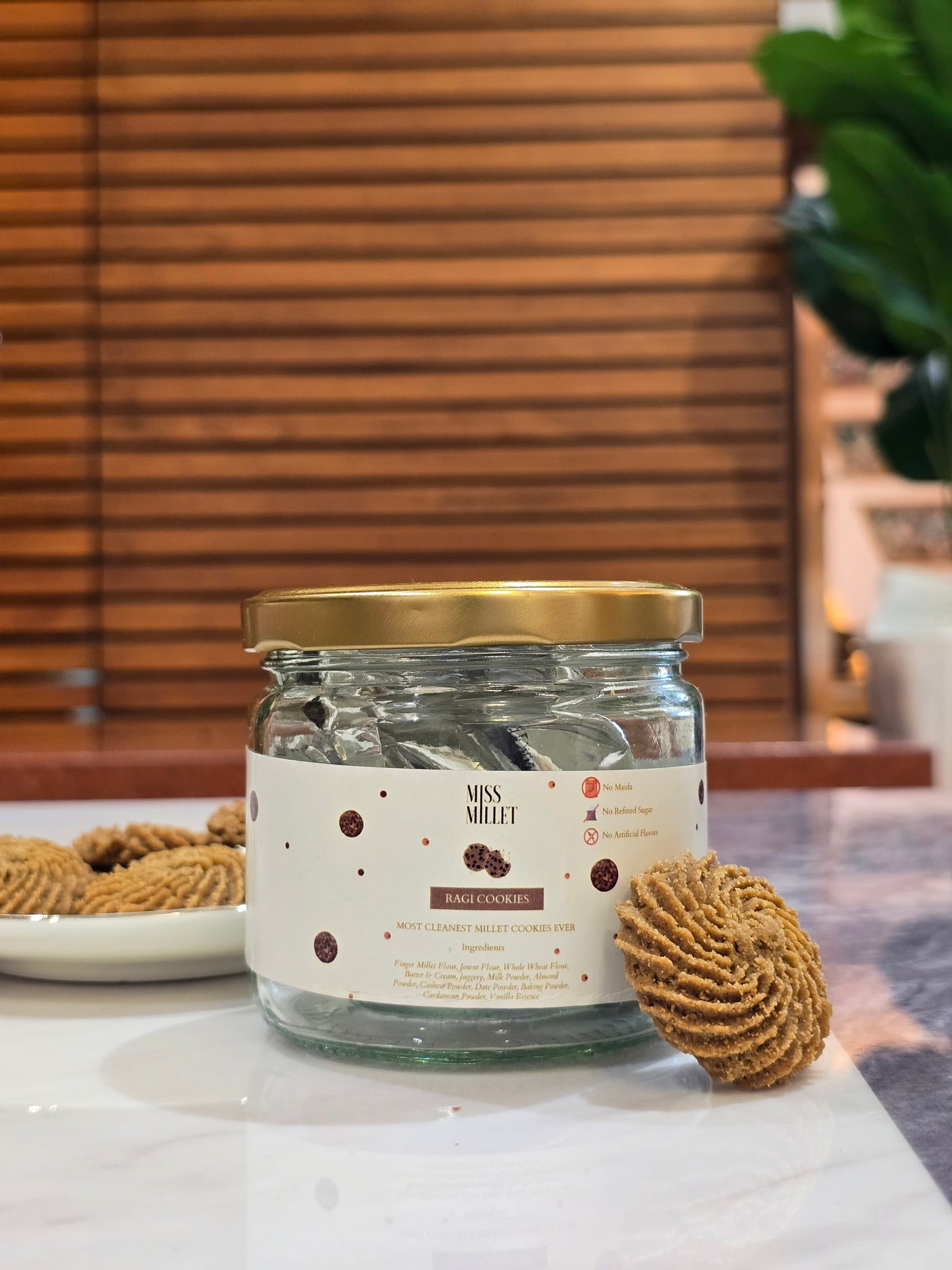 Finger Millet (Ragi), Jowar, Whole Wheat Flour, Butter & Cream, Jaggery, Milk Powder, coco Powder, Baking Powder, Cardamom Powder, Vanilla Essence.